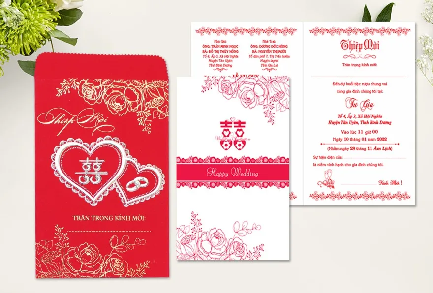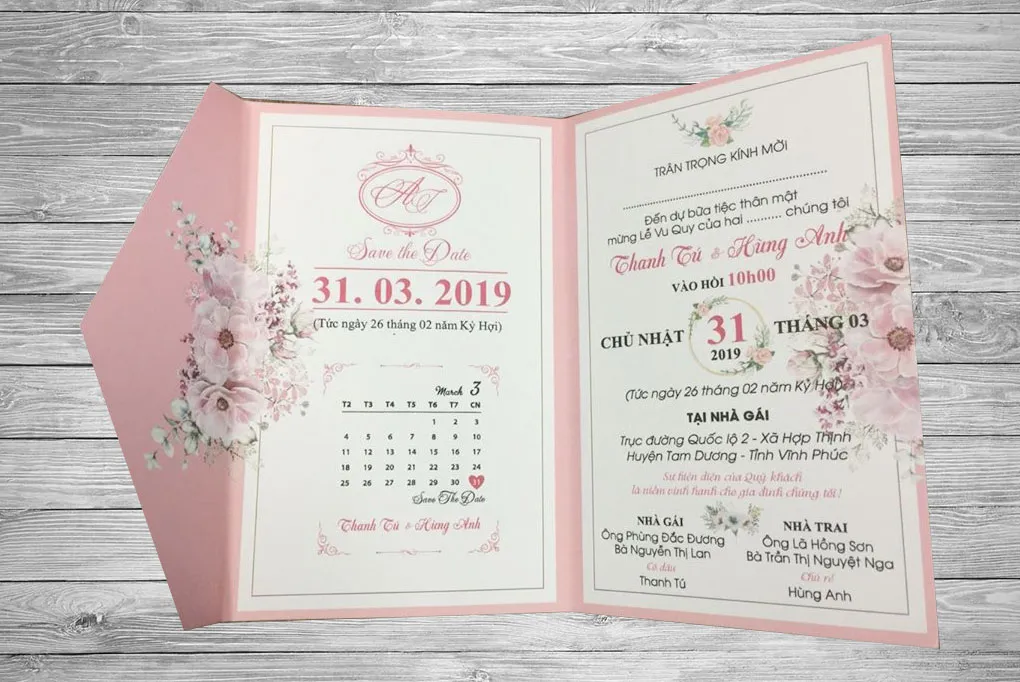 - Thời gian in ấn: Nên đặt thiệp trước 1-2 tháng so với ngày cưới để có đủ thời gian thiết kế, in ấn và gửi đi.
