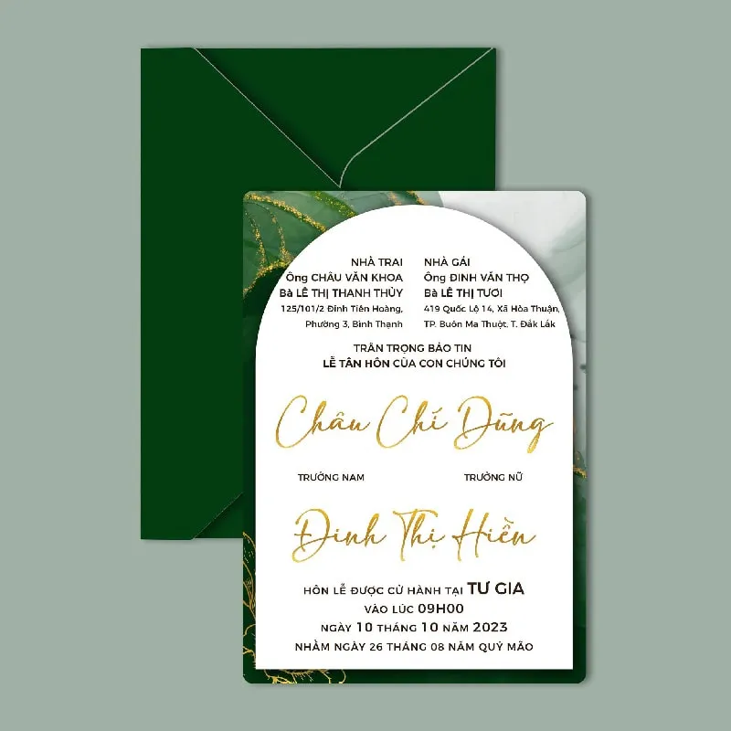 - Thiệp Cưới Màu Xanh Lá Cây – Lựa chọn tuyệt vời với thiết kế độc đáo và chất lượng cao cấp.