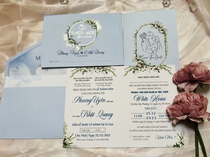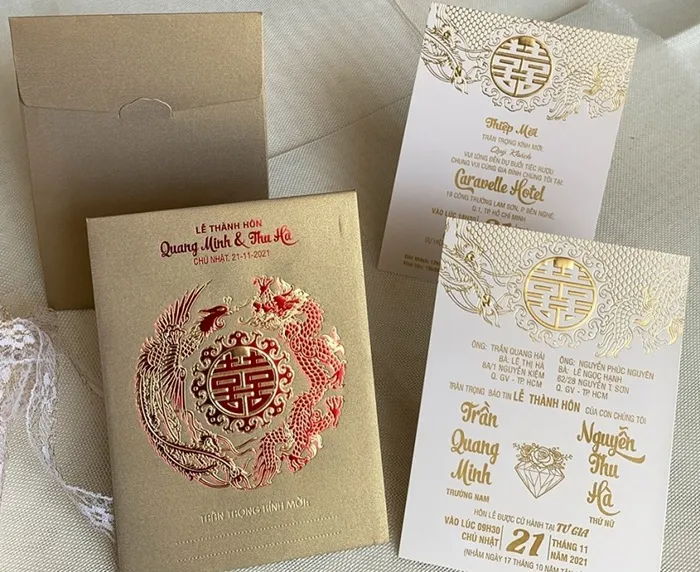 - Thời gian in ấn: Nên đặt thiệp trước 1-2 tháng so với ngày cưới để có đủ thời gian thiết kế, in ấn và gửi đi.