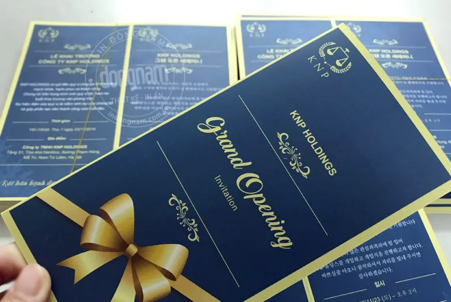 - Kỹ thuật in đặc biệt: Ép kim, in nổi, in UV, cắt laser tạo thiệp mời doanh nghiệp đẳng cấp và sang trọng.